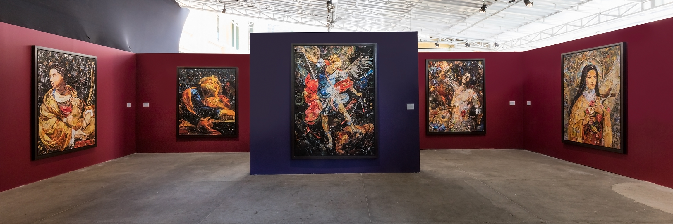 As a contemporary artist, I have always been eager to share the themes that have contributed to the development of the culture of images. My relationship with sacred art in this contemporary context, however, has always been ambivalently restrained by contextual norms contrary to the practice or illustration of religious forms. It is in this unique and unorthodox context that I found the rightful freedom to work with these themes that are close to my personal life and yet distant from current art. As someone who has always worked with the act of believing, I finally illustrate here, through the confused lens of the contemporary outlook, images of those who dared to believe more than everyone else. Art most resembles life in terms of how its apotheosis results from the faith invested in it. The saints, examples of faith and transcendence, continue to teach us to believe and to live as true human beings.
