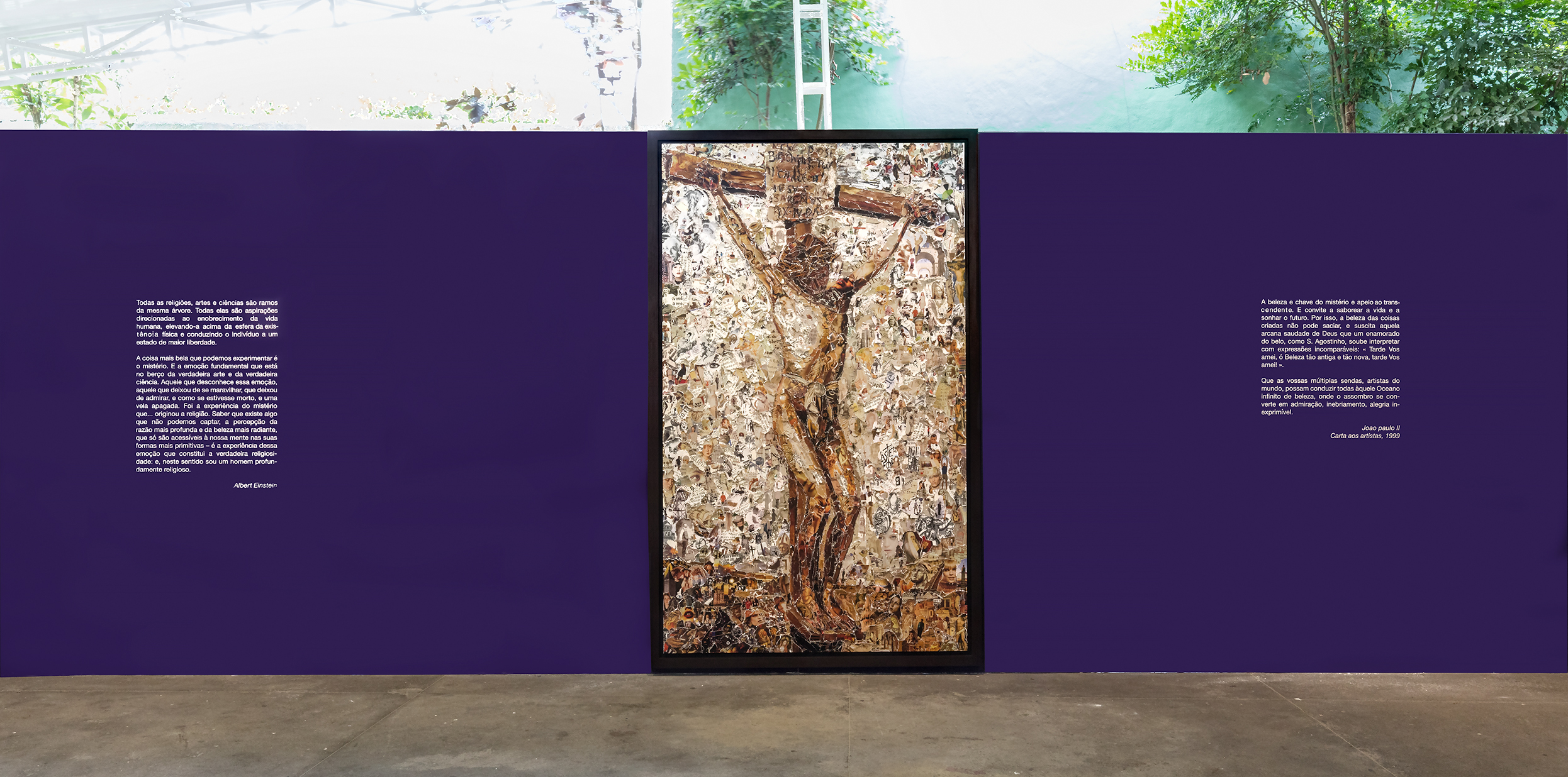 With the support of Galeria Nara Roesler, Vik Muniz presents Imaginária, an exhibition that brings together 14 unprecedented works from the Repro series, in which the artist recreates images of historical works of art, making use of advertisements, leaflets and other materials published by museums. In Imaginária, the artist reproduces historical images of saints by artists such as Giovanni Battista Tiepolo, Guido Reni, Simon Vouet, among others.